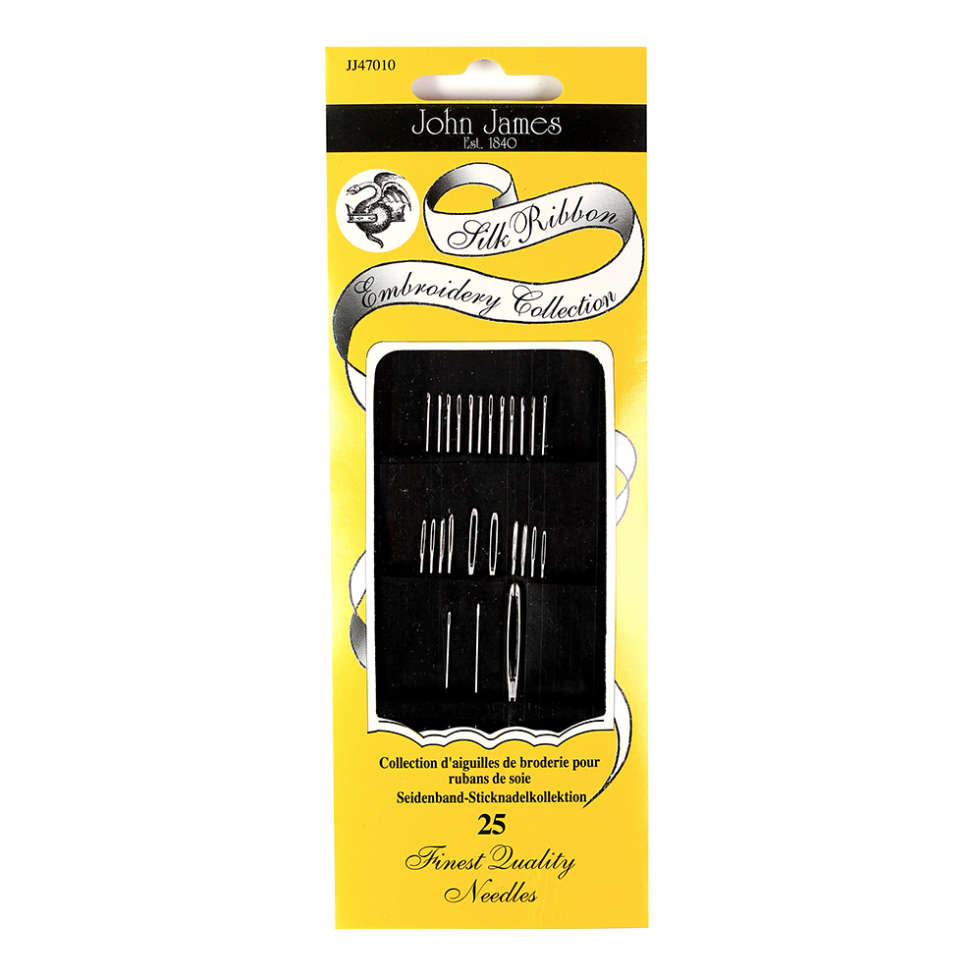 Agujas John James, famosas por su calidad a nivel mundial. Este set de agujas para bordado en cinta es una fantástica herramienta para todo creador. En su característico envase amarillo, incluye agujas de chenille, tapicería,bordado, finas, quilting, mostacillas, sombrerería y tocados. Hecho en UK. Set de 25