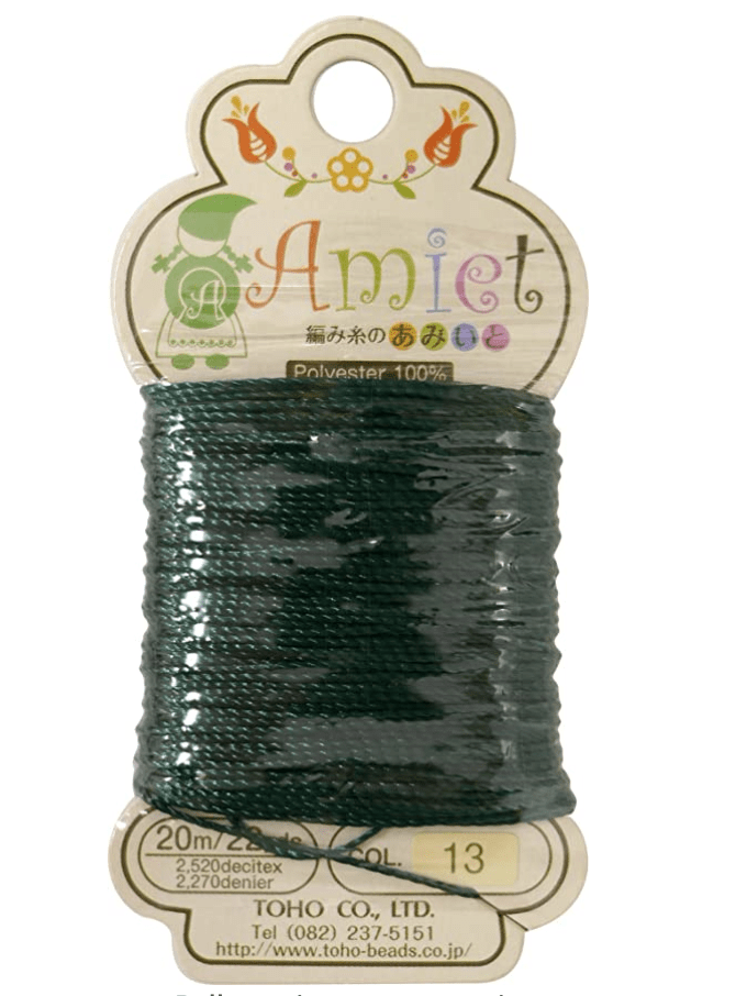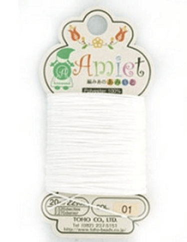 Hilo de hilar Amiet, considerado de los mejores en su categoría. Como todos los productos de marca Toho, está hecho con los mejores materiales. Es de espesor 0, y vienen 20 m en cada carrete. 100% polyester.