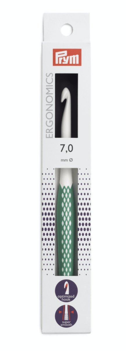 Crochet ergonómico material de alta performance, flexible, liviano y cómodo para la mano. Viene en caja. Crochet Nº7.