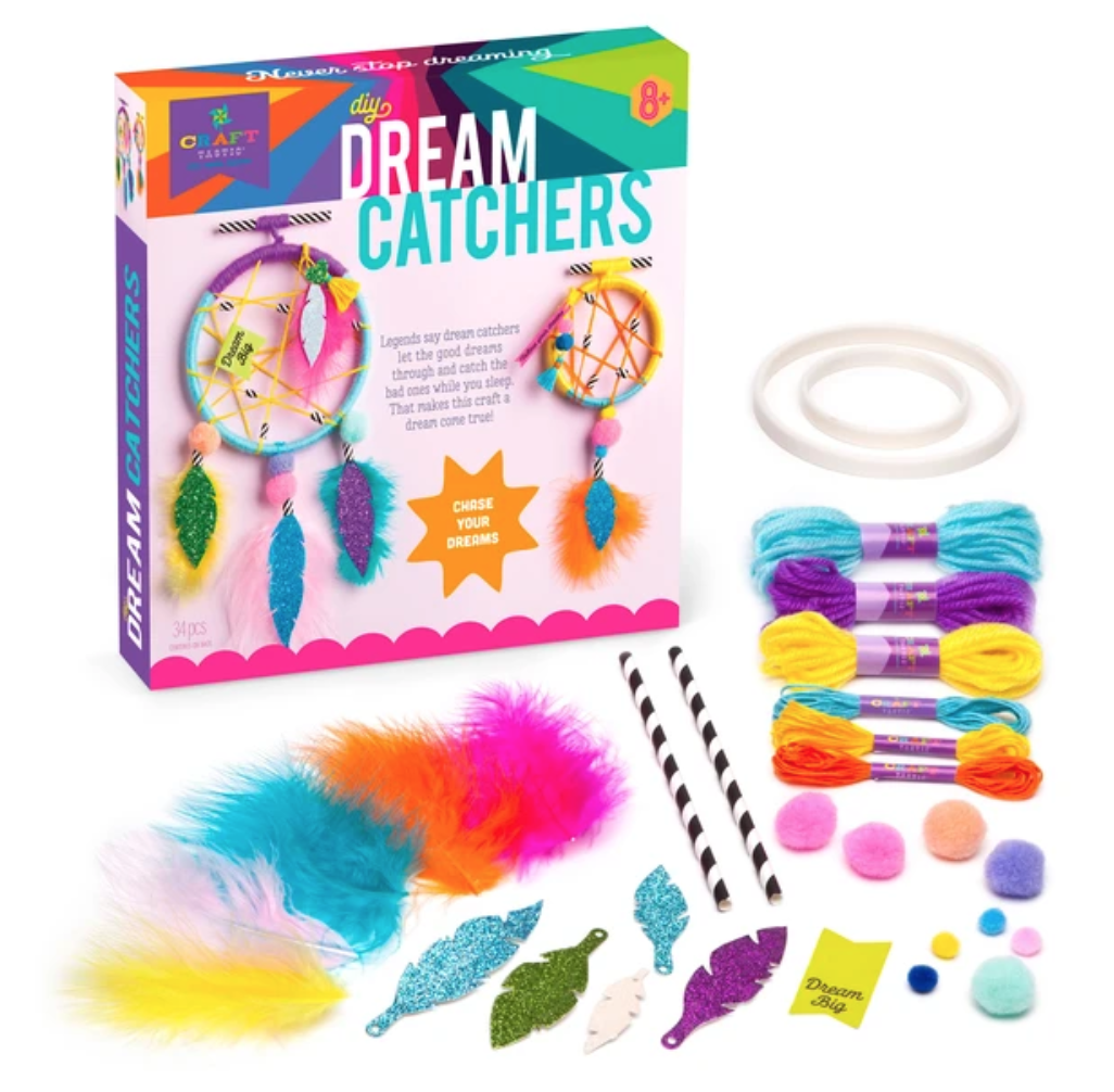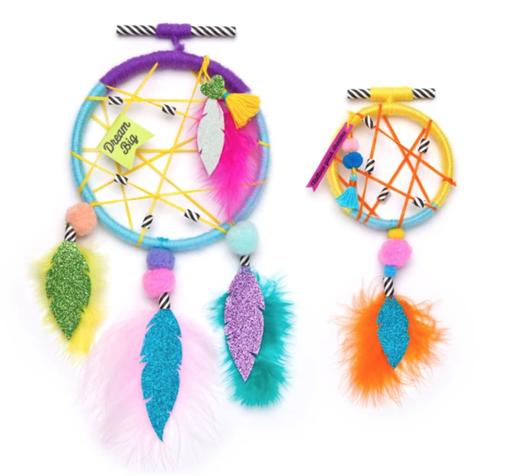 Icluye todos los materiales para realizar 2 atrapasueños que harán que tus sueños se vuelvan realidad. Diámetros de 7,5 y 12,5 cms. Incluye el adhesivo necesario para hacerlos y las instrucciones.