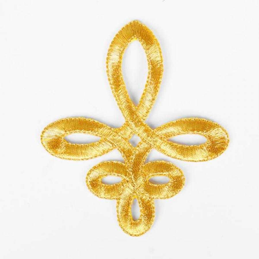 Aplicación bordada con forma de nudo simétrico, termoadhesiva.