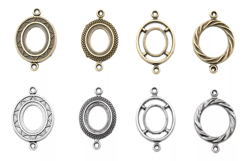 Ocho conectores que pueden servir para realizar una joya o decorar una prenda o manualidad. De color plateado y dorado.