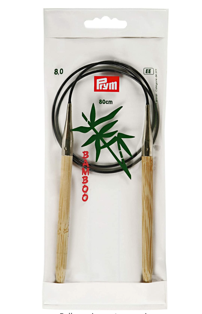 Palillos circulares de bambú de alta calidad. Ideales para tejer mangas, gorros y cuellos sin costura. Con el cable, miden 80 cm. Palillo Nº8