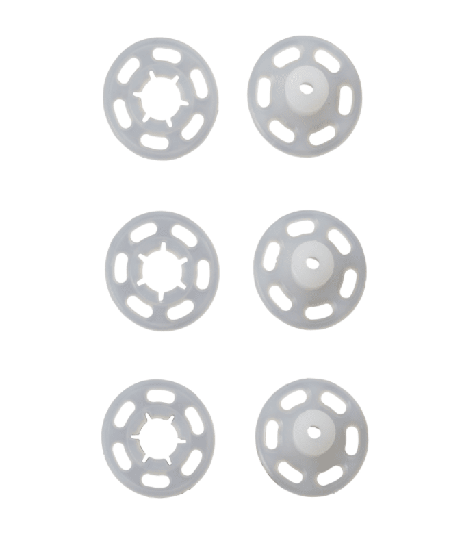 Set de broches a presión en plástico transparente irrompible en tamaño de 10 mm. Extra livianos e invisibles.