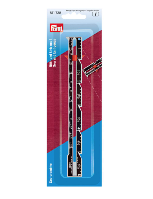 Regla guia de costura y tejido ajustable. Se usa directo en la máquina de coser o mientras se teje a palillo o crochet. La regla cuenta con espaciador. hecha de metal. Gran ayuda para marcar costuras y ojales.