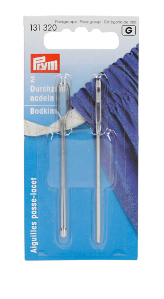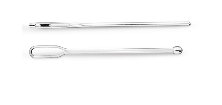 2 unidades de gujas para cintas, elásticos y cordones, punta roma, acero y bronce.