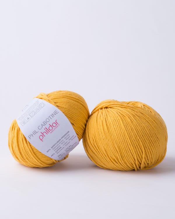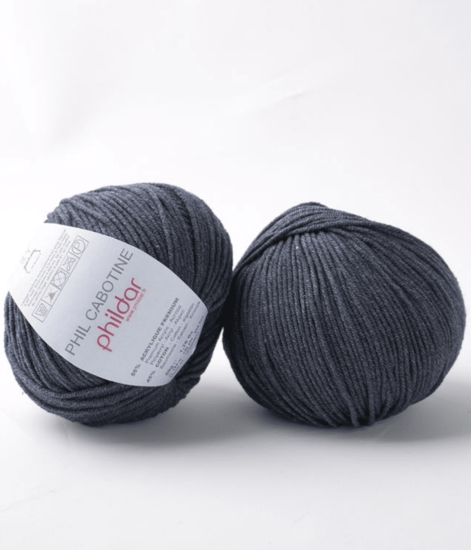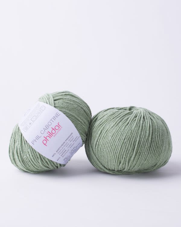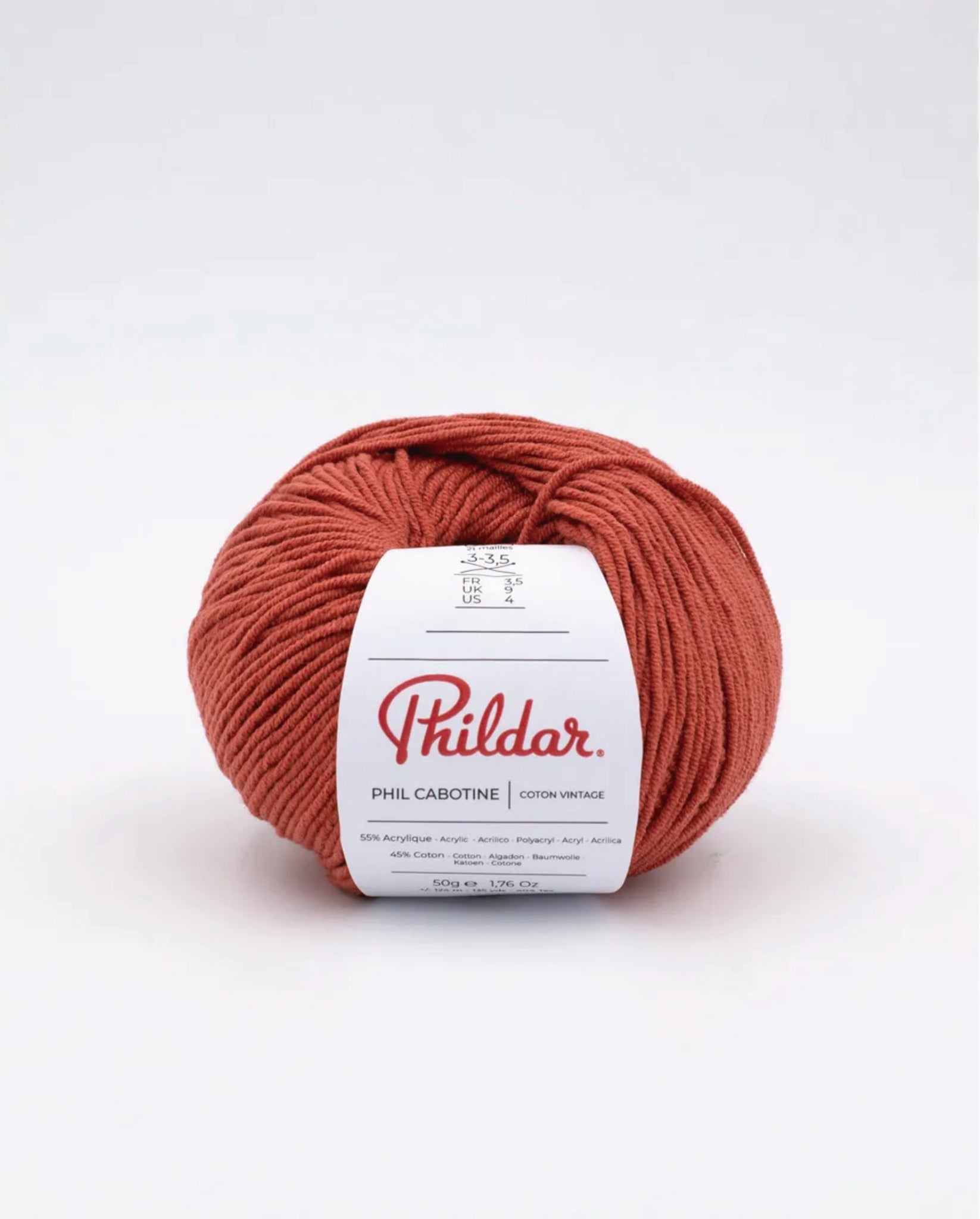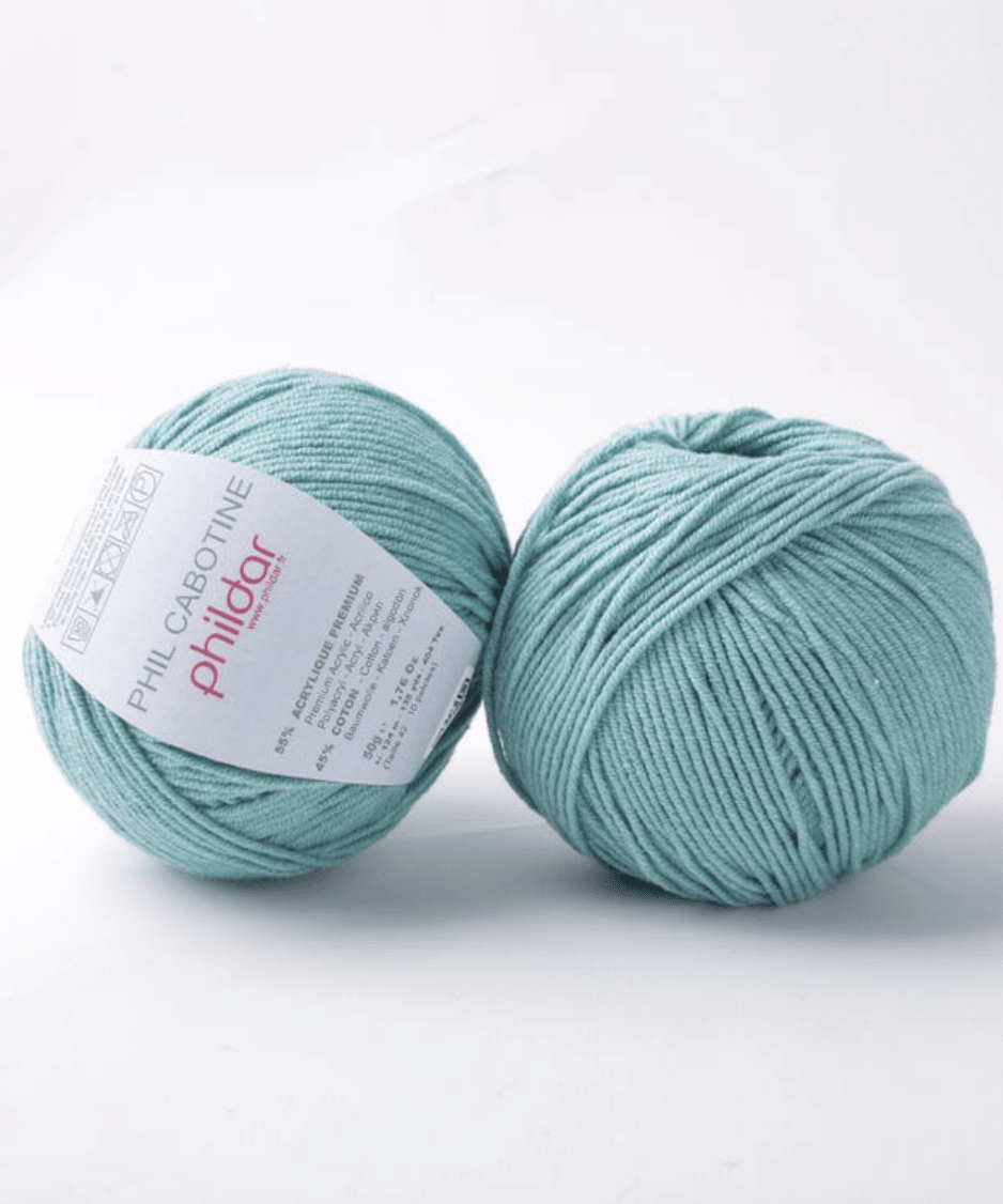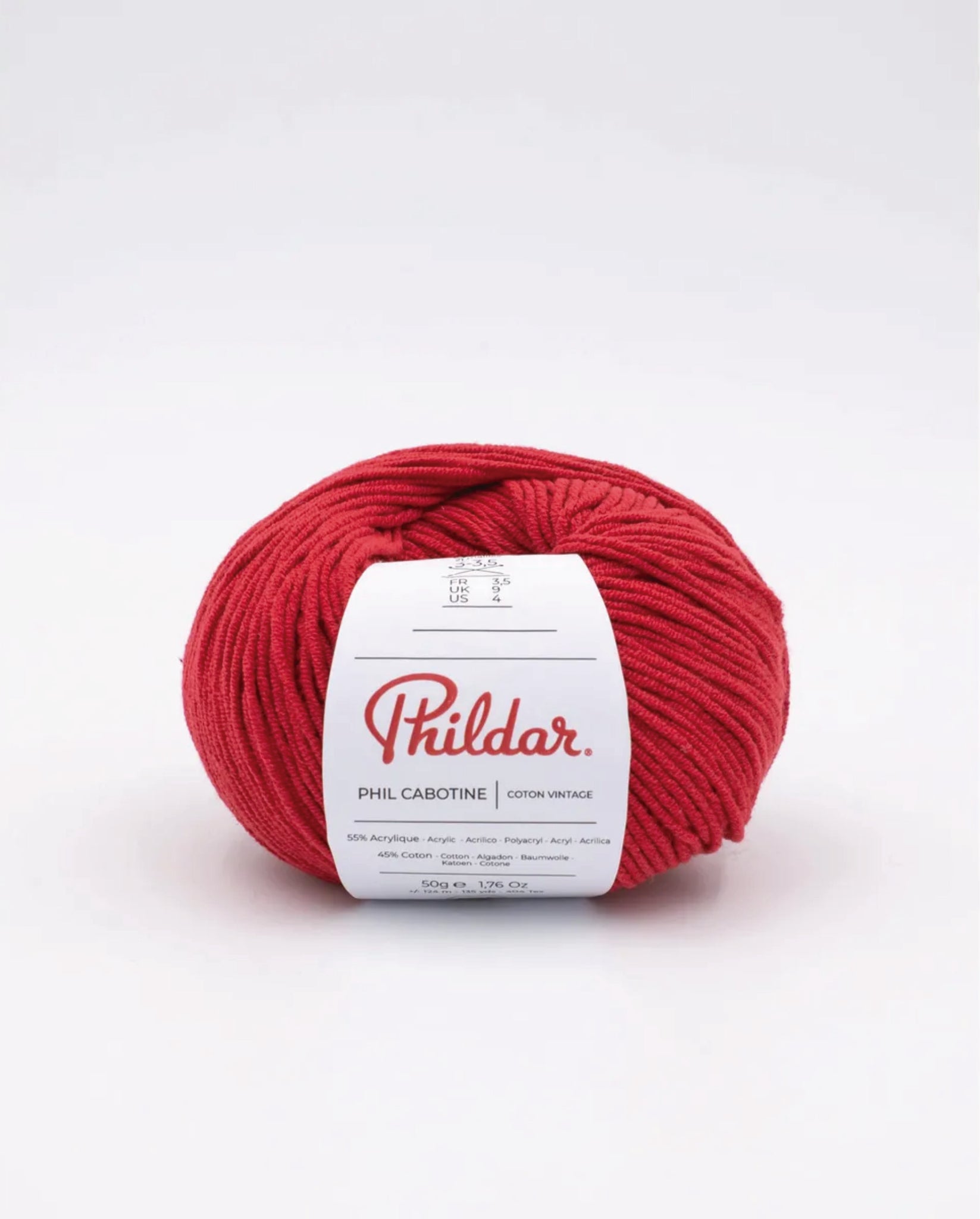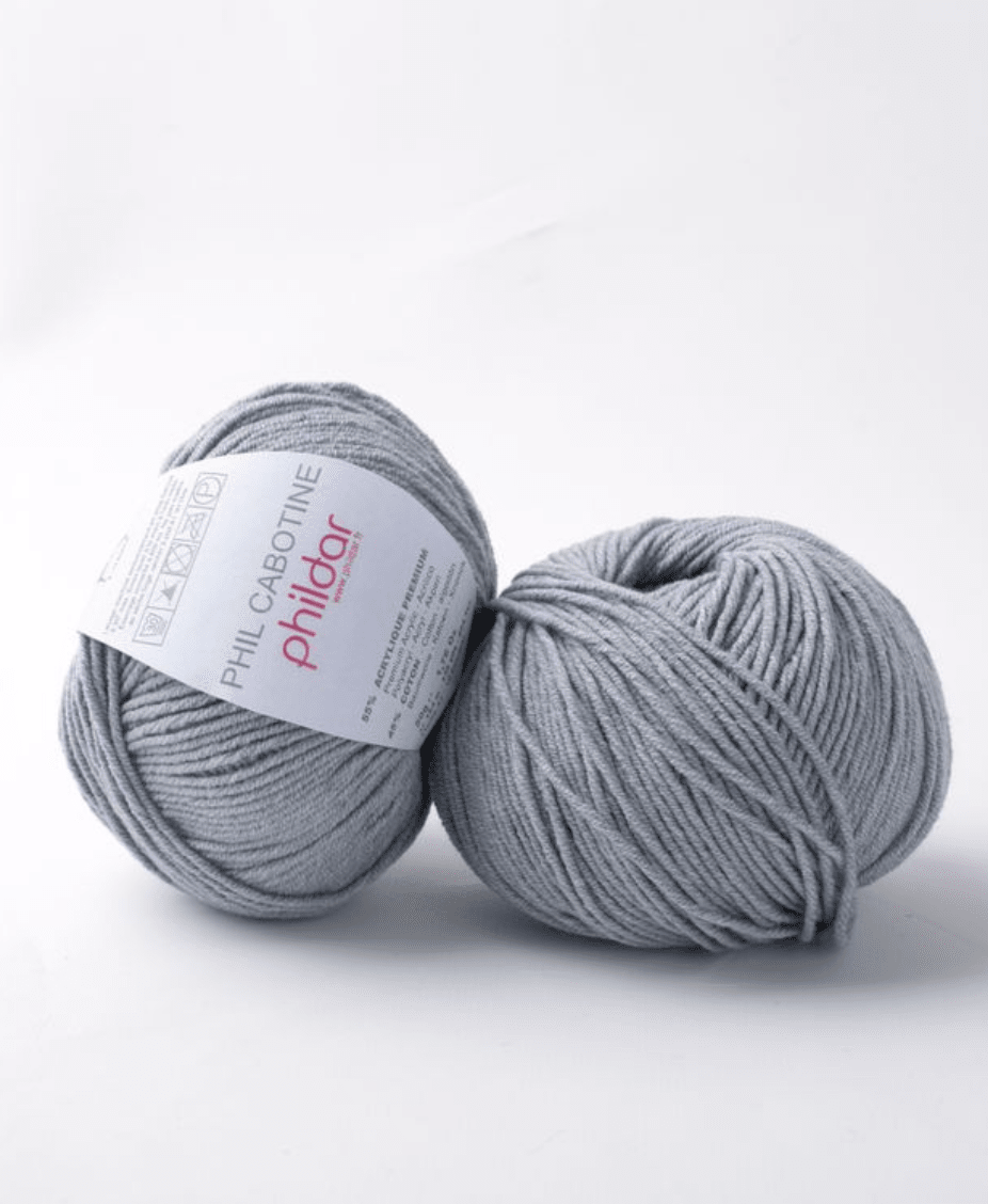 Phil Cabotine, es un hilado de fibra suave y ligeramente blanqueada lo que le da una sensación un poco vintage. Es una combinación de algodón y acrílico de alta calidad, lo que la hace una super opción para el verano y de mantención más fácil. Este algodón es una opción buena para principiantes.