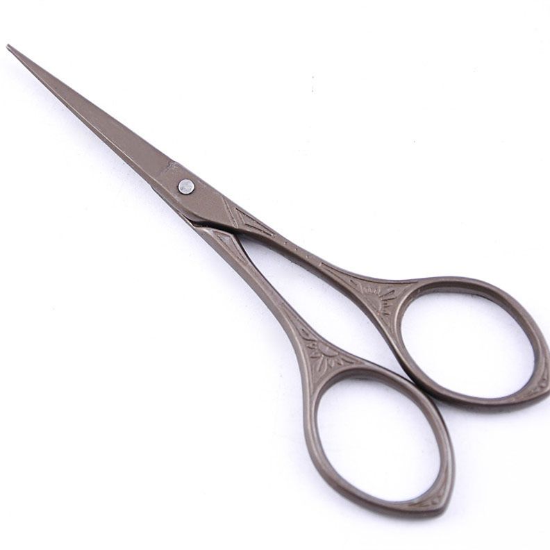 Tijera bronce ennegrecido, punta fina, 10 cm.